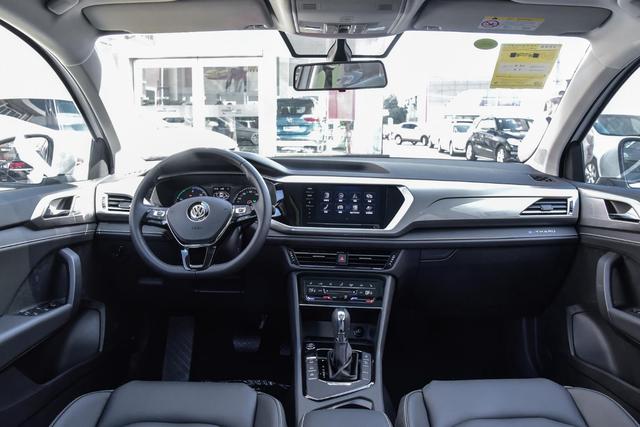 进入车内,途岳纯电仍然沿用燃油版的设计,可以看到新车采用了e-Tharu专属踏板,并在副驾驶前的中控台上打上e-Tharu徽标。
