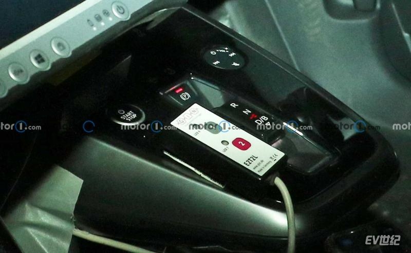 换挡机构采用了悬浮式设计,从图片我们猜测,换挡机构上的R、N、D标识位置可前后波动进行换挡,另外在该区域还设计了电子手刹,启动按键以及音响切换和快速静音操作按键。
