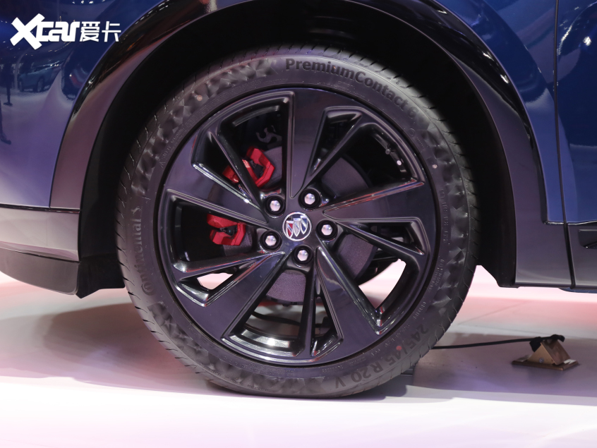 20英寸双五辐的旋风式轮圈造型动感,熏黑式处理是很多主打运动性能车型常用的设计手法。此外,新车的刹车卡钳原厂就为红色,一步到位,不需要日后再去改装。轮胎上,实拍车型搭载马牌PremiumContact 6系列轮胎,规格为245/45 R20。