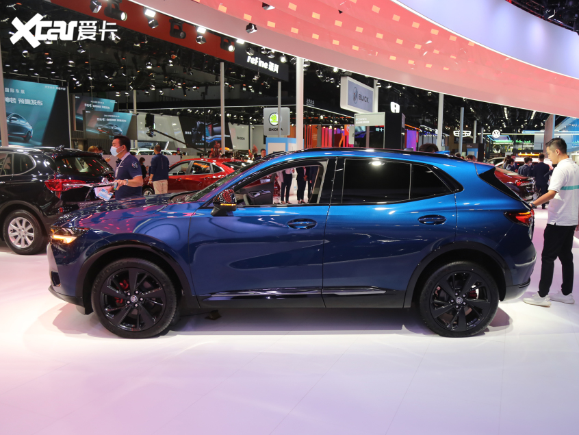 车侧看上去格外敦实,专属幻影蓝车漆与亮黑色轮圈搭配起来格外和谐。不仅如此,分段式的腰线设计帮助车辆营造出了多个型面的视觉效果,不同角度能反射出不一样的光彩。